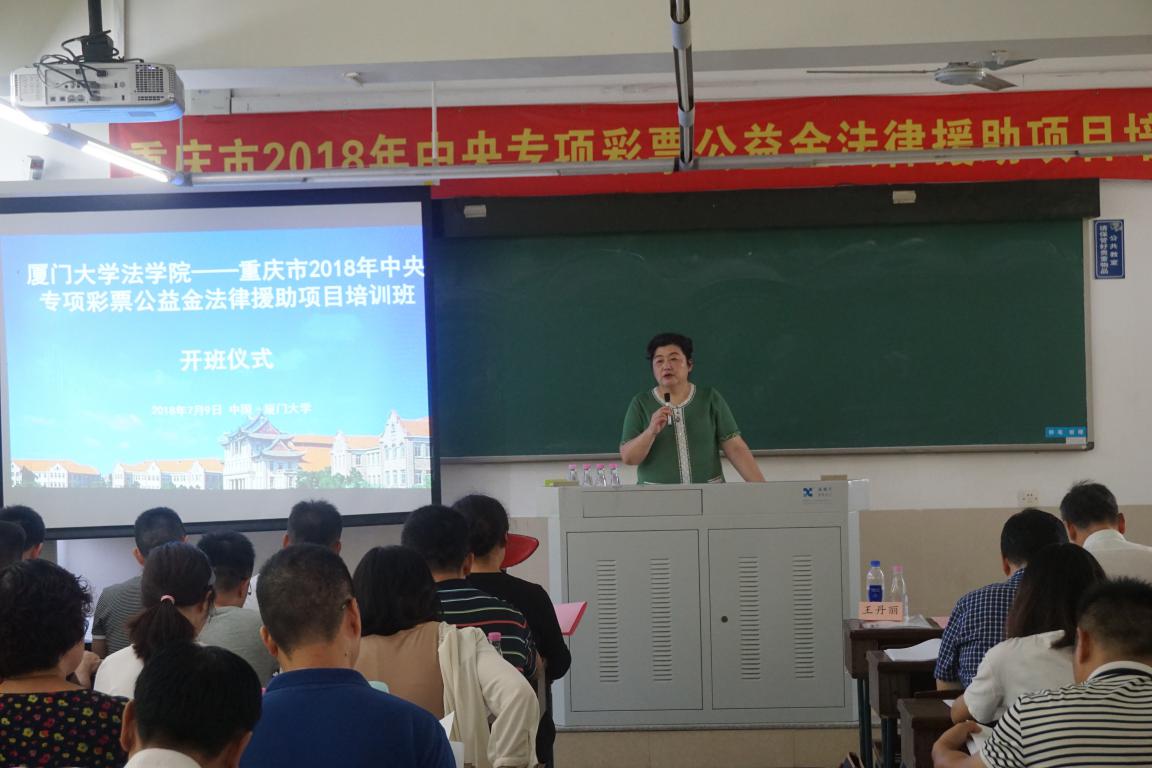 7月9日至12日,由市司法局主办、市法律援助基金会承办的重庆市2018年中央专项彩票公益金法律援助项目培训班在美丽的厦门大学法学院举办。厦门大学由著名爱国华侨领袖陈嘉庚先生创办,法学院是厦门大学历史较为悠久的主要学院之一,有多个重要实验教学和科研平台,拥有国家重点学科和福建省重点学科,拥有实力雄厚的师资队伍,长期为司法领域人才提供专业化培训。市法律援助基金会副理事长兼秘书长王丹丽、副秘书长王智国、市司法局法援助工作处调研员许勤立、厦门大学法学院党委书记张伟出席开班仪式。我市2017年度中央专项彩票公益金法律援助项目实施单位法律援助中心负责人和项目工作人员共49人参加了本次培训活动。