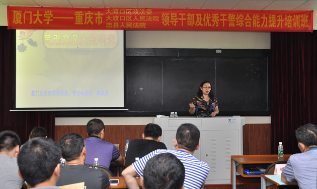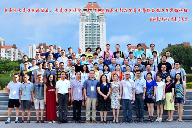 2014年7月14日上午,“厦门大学法学院——重庆市大渡口区政法委、大渡口区人民法院、忠县人民法院领导干部及优秀干警综合能力提升培训班”在厦门大学法学院A栋302教室隆重开班。我院副院长兼社会培训中心主任李兰英教授致欢迎词,重庆市大渡口区人民法院刘星副院长做动员讲话。