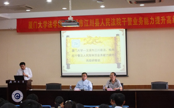 2014年10月19 -25日,玉溪市江川县法、检两院干警及人民陪审员业务能力提升高级研修班在厦门大学法学院隆重开班。此次研修班围绕法、检两院干警及人民陪审员业务能力提升为主旨展开,共分两期进行。