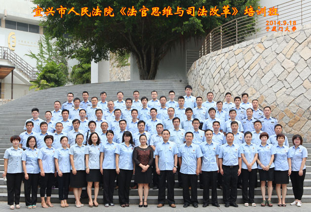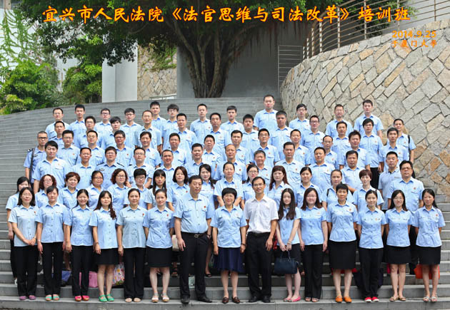 2014年9月17日—9月22日和2014年9月24日—9月29日,宜兴市人民法院共举办两期“《法官思维与司法改革》培训班”,分别在厦门大学法学院A栋302教室和B栋138教室隆重开班。我院副书记郭锦星教授、副院长李兰英教授致欢迎词,宜兴法院刘勇院长、翟一平副院长分别做做动员讲话,李晓辉老师和温美昭老师分别主持开班仪式。
