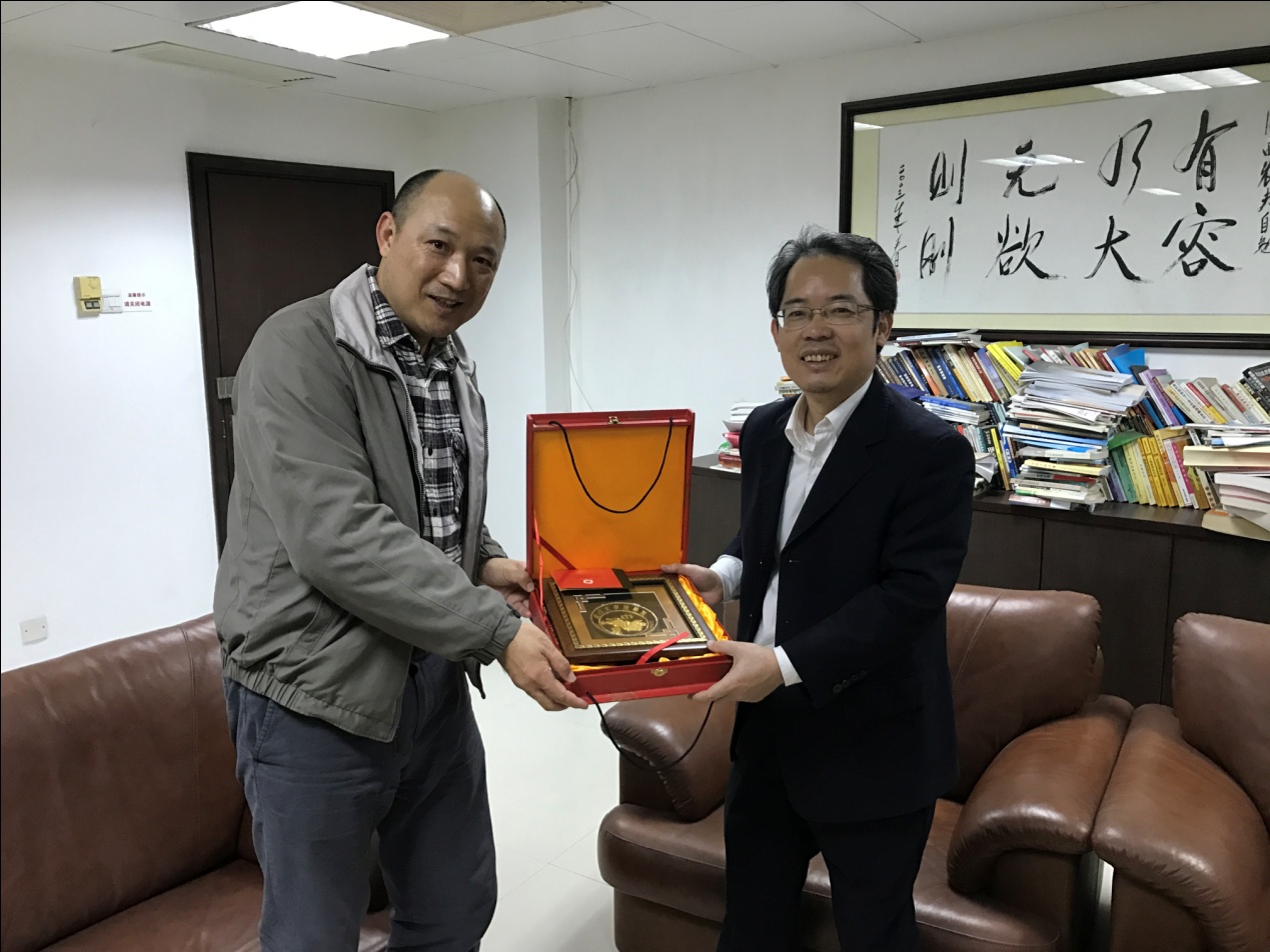郭春镇教授一行还向受访各方赠送了纪念品。